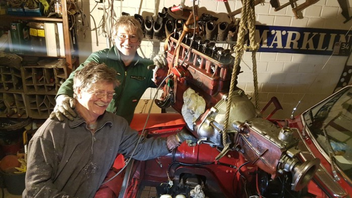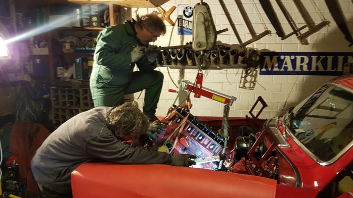 Doch vorher musste die Maschine nach 47 Jahren das erste Mal die Karosserie verlassen. Dank Thomas und Klaus hat der Ausbau, neben der vielen Arbeit, einen Riesenspaß gemacht.